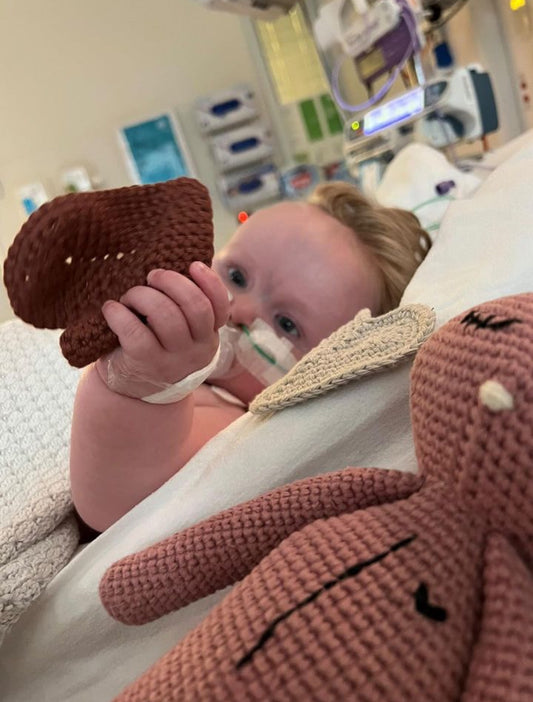 We aren’t a NICU family but am hoping this little teddy will assist with comforting our bub as we slowly transition to his cot!