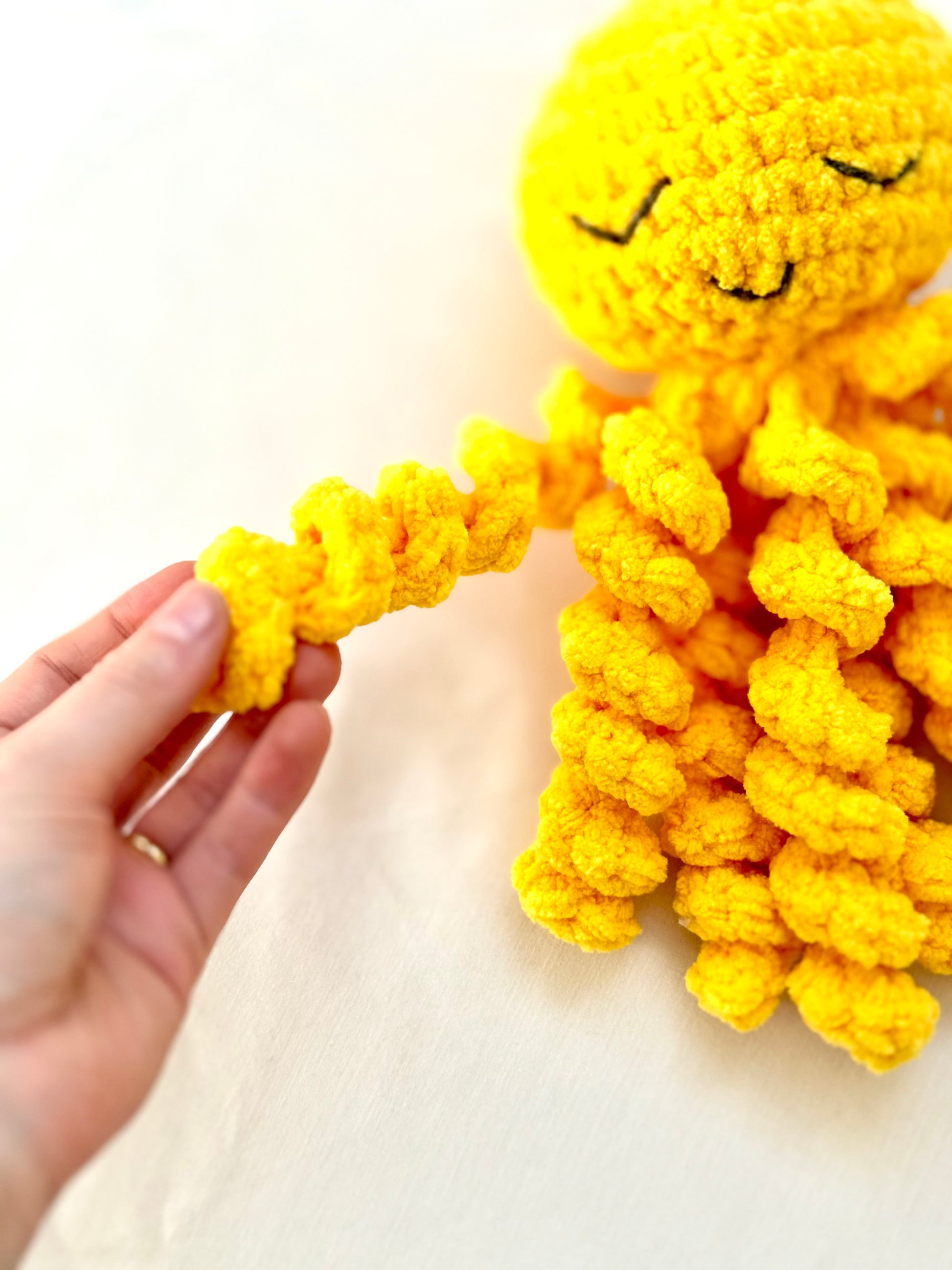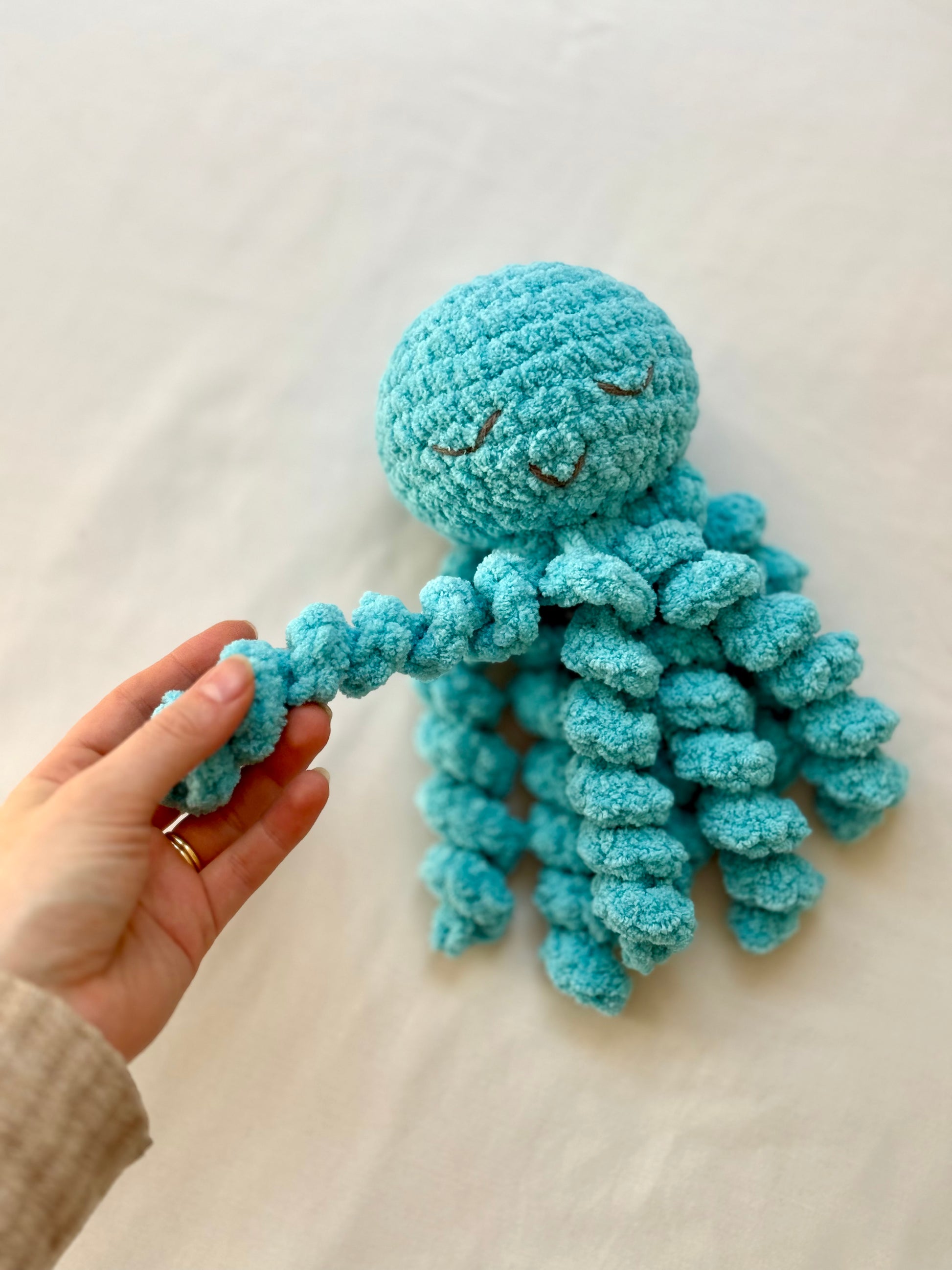 Every Ollie the Octopus is lovingly handmade to order just for you. We don’t mass produce — each one is carefully crocheted with comfort and care in mind. Please allow 4-6 business days for us to make and pack your order before it ships. Thank you for supporting small, meaningful craftsmanship.